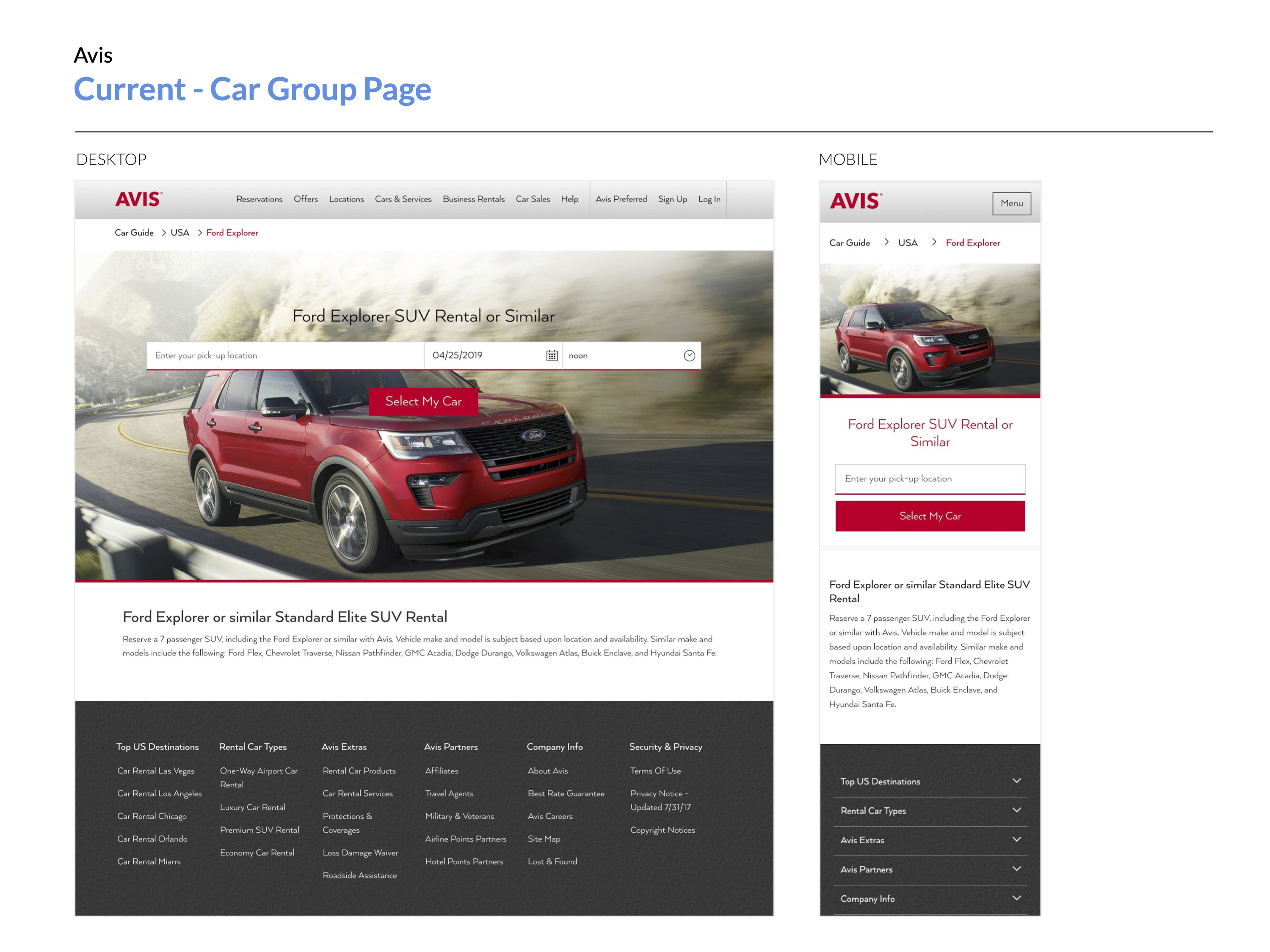 After reviewing Avis's current (at that time) car group page, it was empty and didn't help their users understand each car detail in that specific car group.