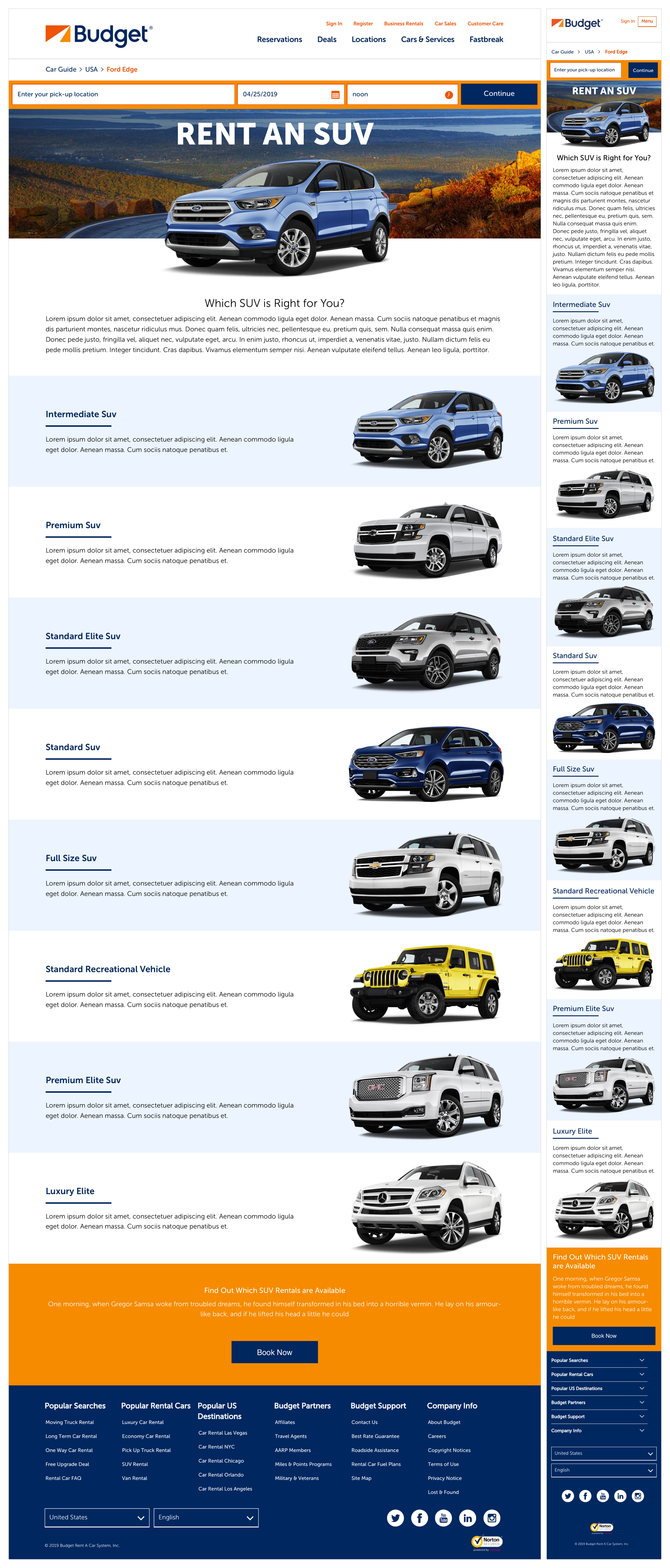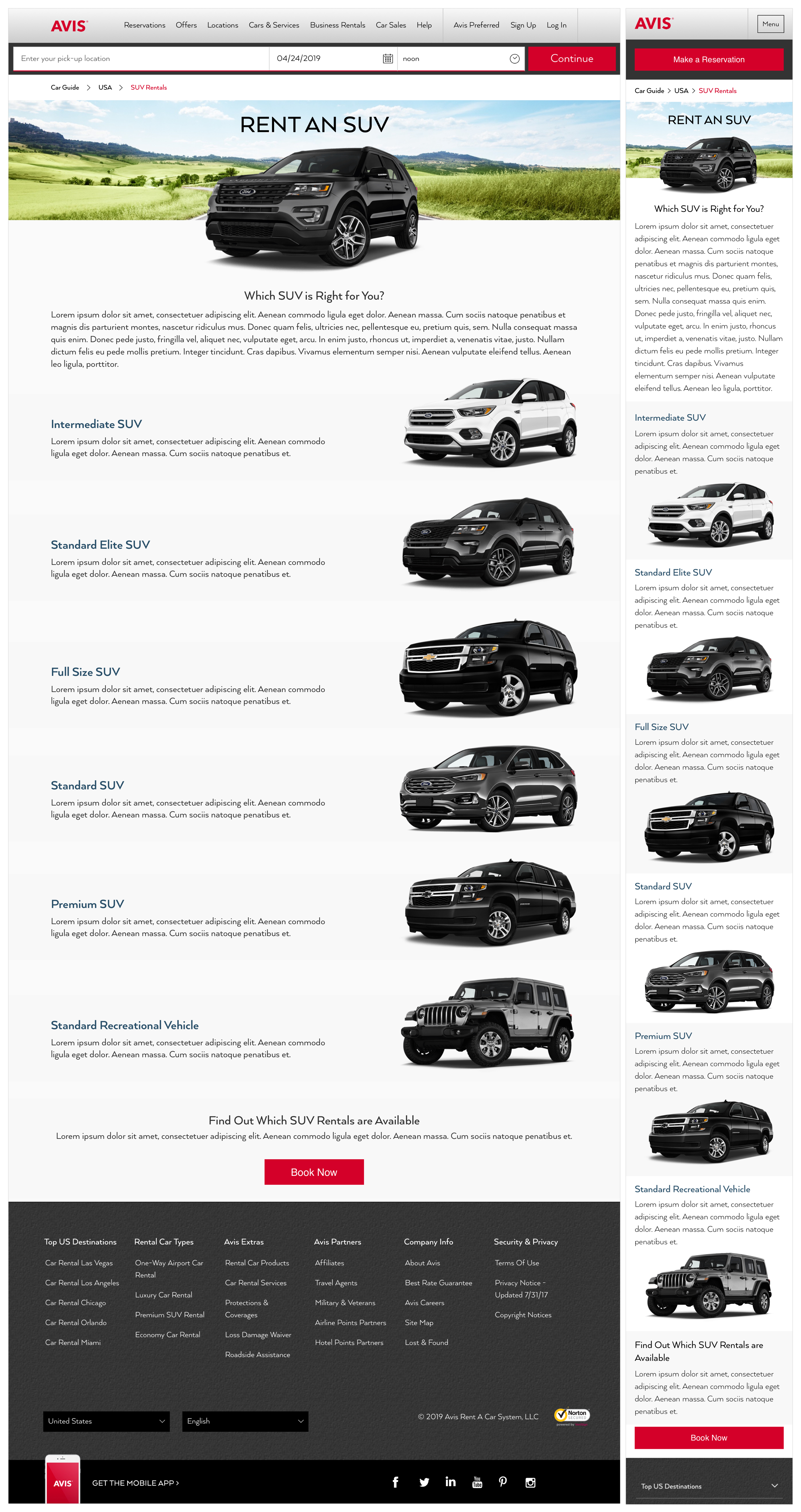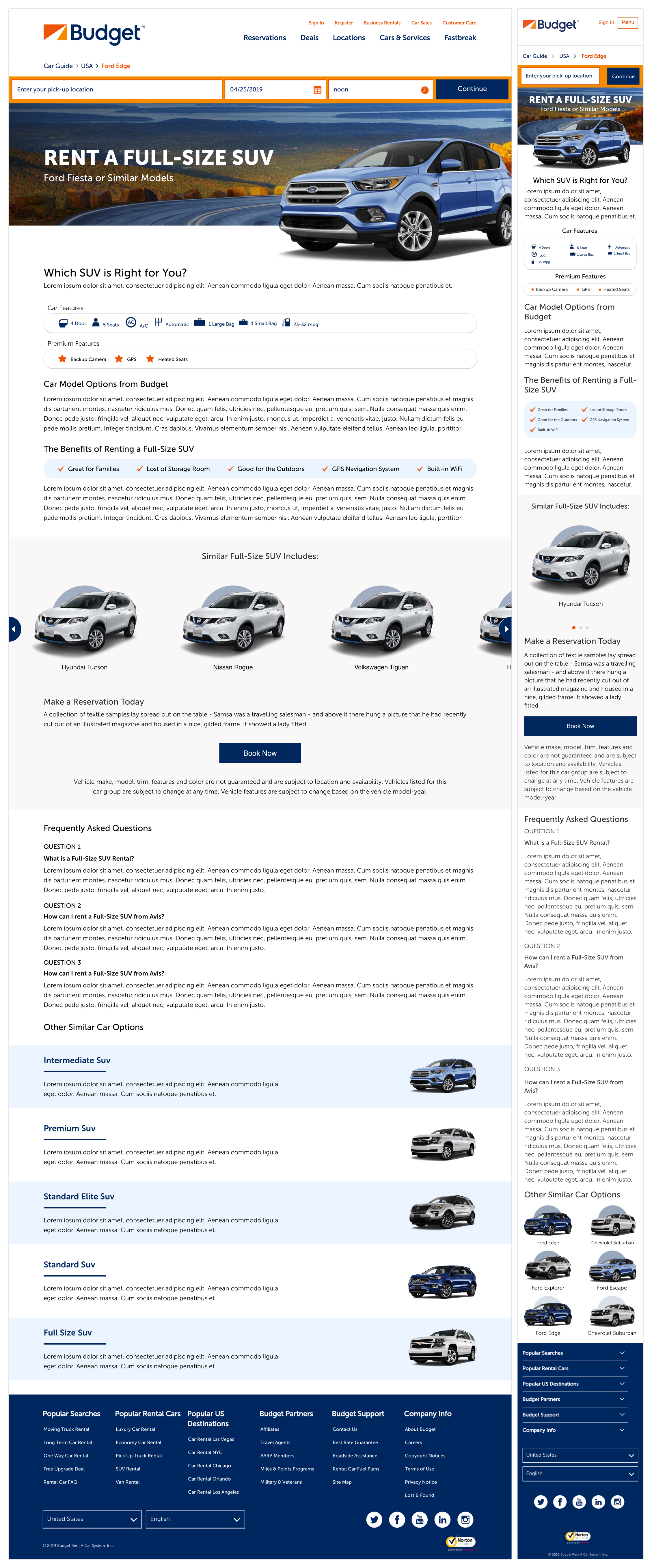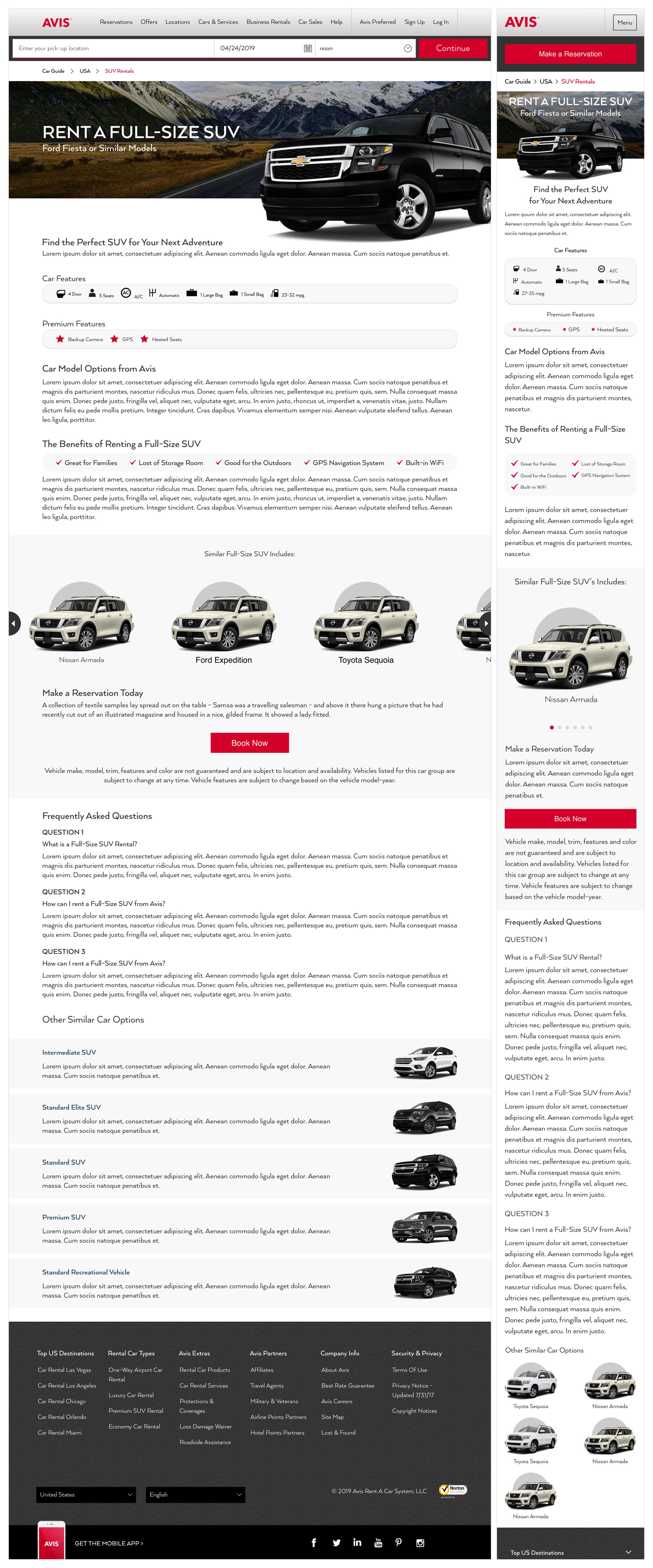 Avis and Budget often follow each other structure, but their design is different. Since both brands mostly feed off each other layout, I used the same low-fidelity wireframes as Avis and applied them to Budget. After review and approval, I designed high-fidelity wireframes to continue to show the concept of each page.