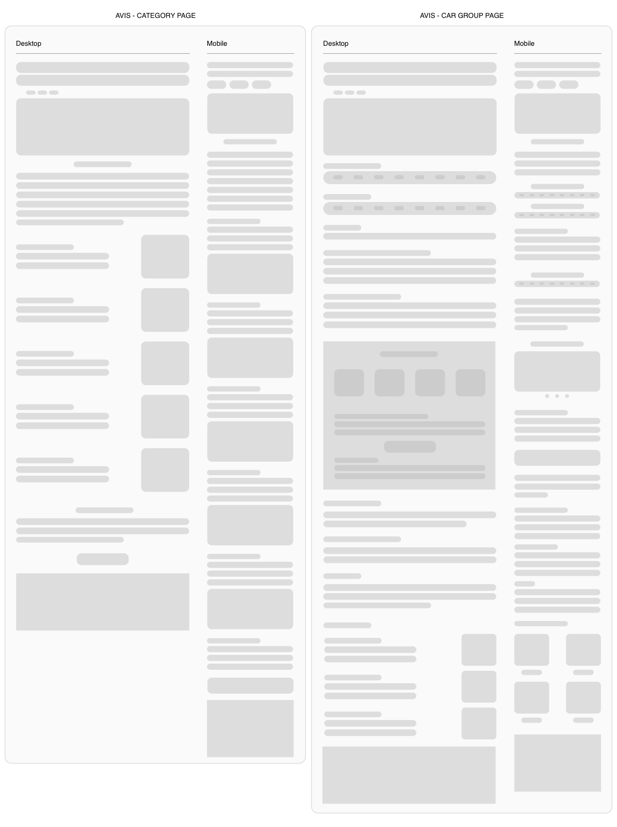 Based on the request requirements, I presented to the stakeholders low-fidelity wireframes as a starting point for the new layout & structure of the category and car group pages. Once approved, designed high-fidelity wireframes to continue to display the concept of each page.