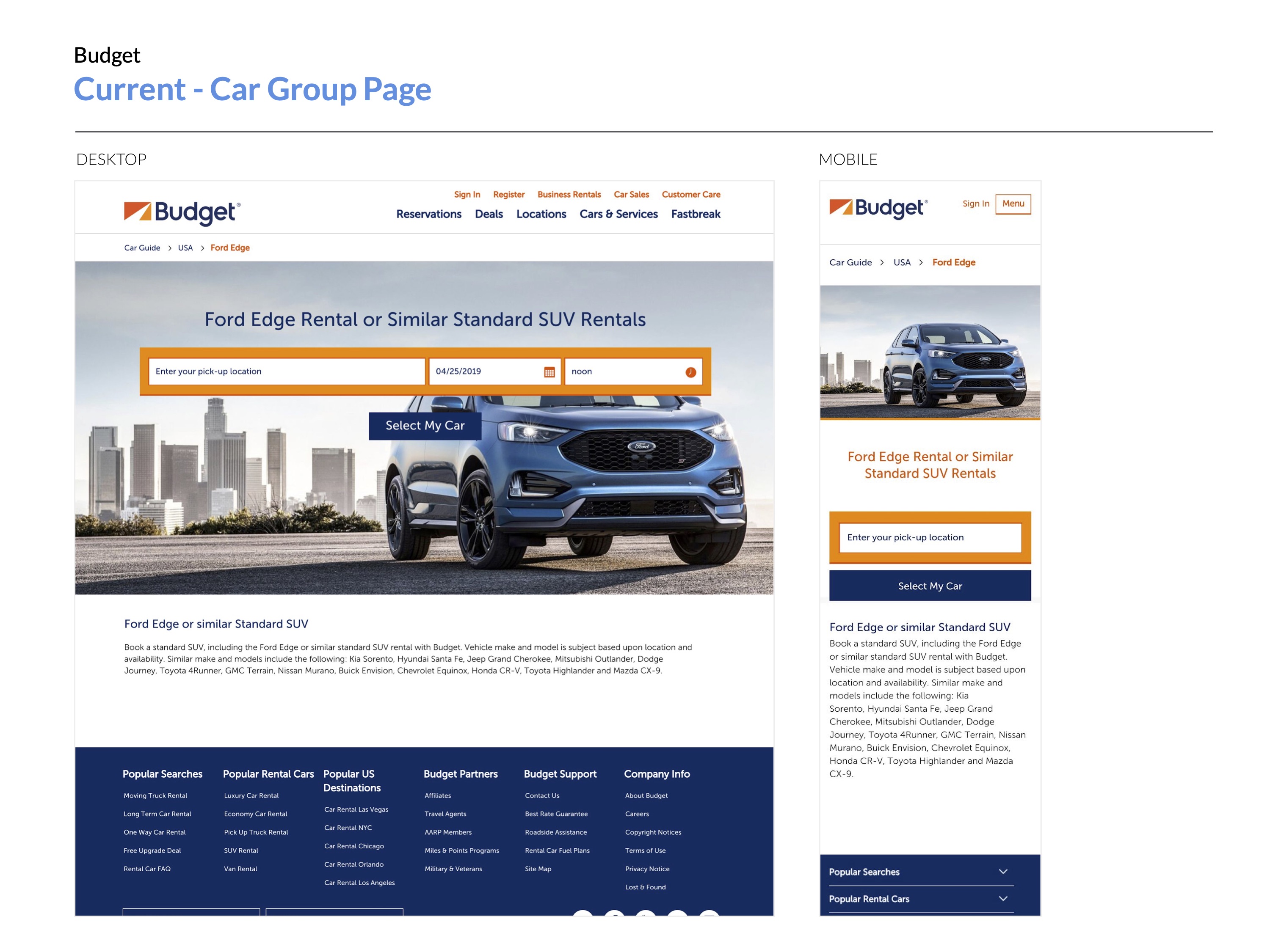After reviewing Budget's current (at that time) car group page, it was also empty and needed to help their users understand each car detail in that specific car group.