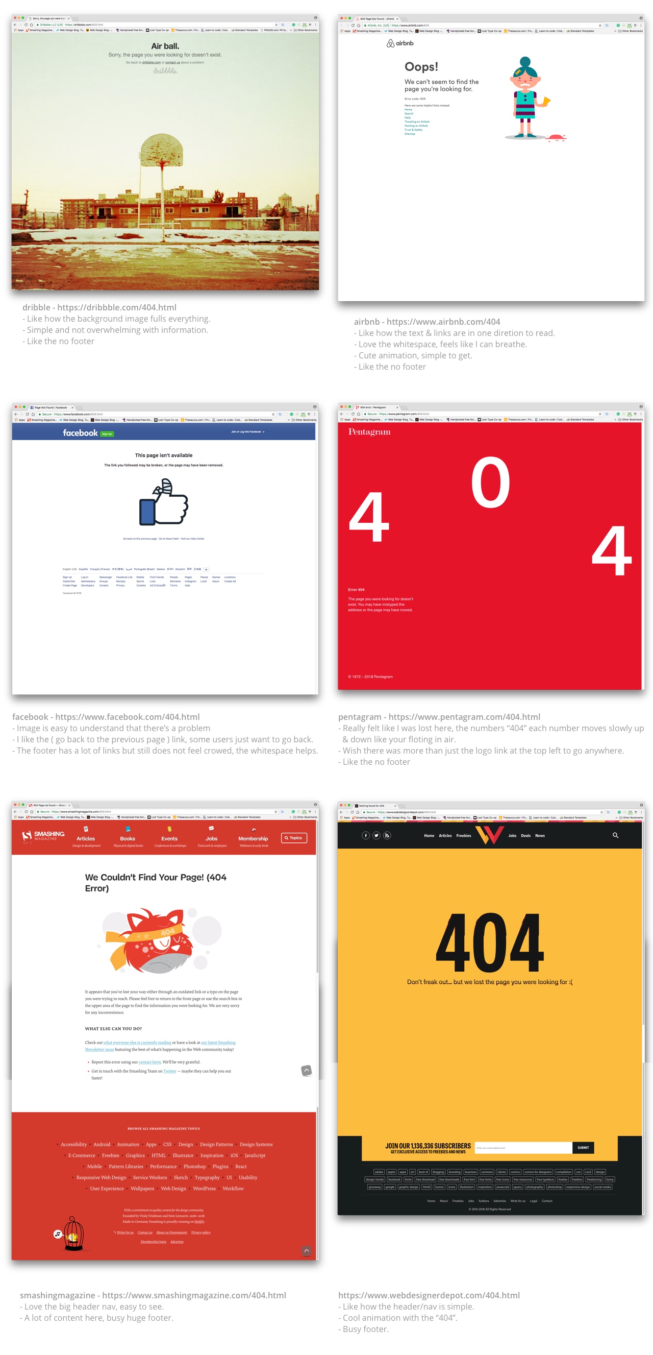 Researched other well-known companies for examples of how they display their 404 error pages.
