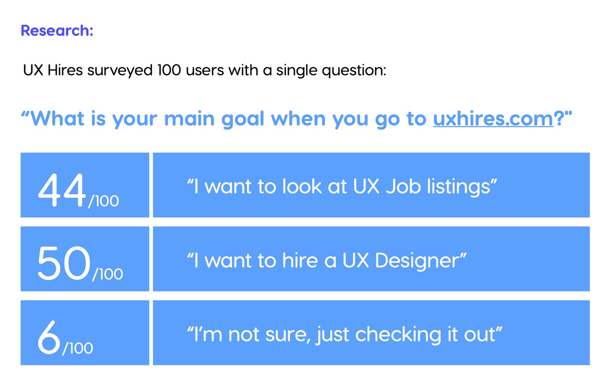 - 50/100 say they want to hire a UX Designer